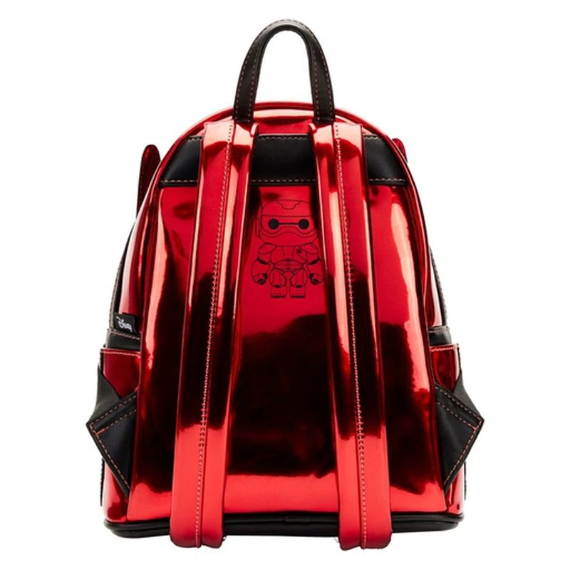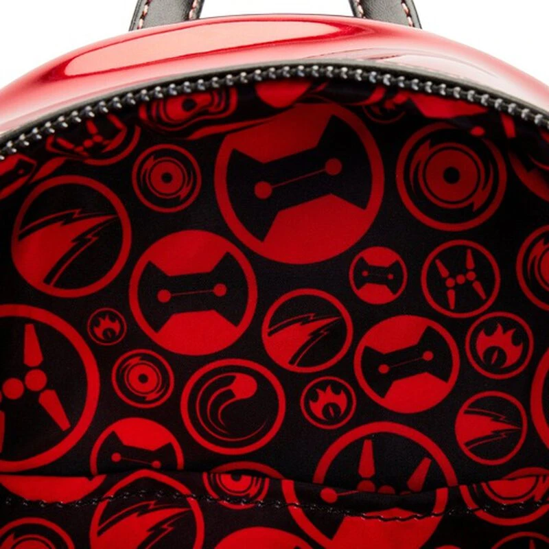 The D23 exclusive Funko Pop! by Loungefly Big Hero 6 Baymax Battle Mode Cosplay Mini Backpack is made of holographic vegan leather (polyurethane). Bag has adjustable shoulder straps and sturdy metal hardware. Additional features include applique, debossed, and printed details. Take note of the coordinating inside lining.