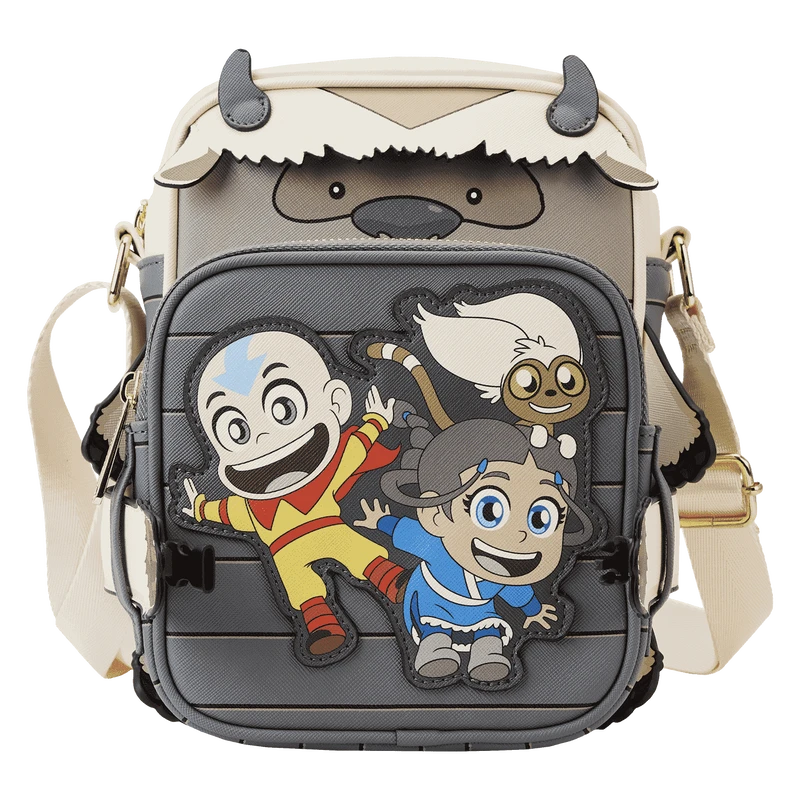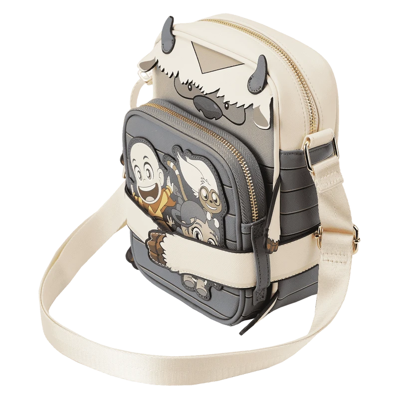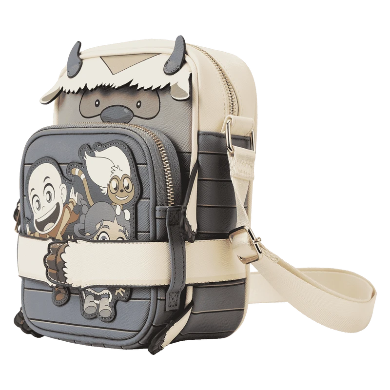 The Loungefly Avatar: The Last Airbender Appa CROSSBUDIES Bag is made of vegan leather (polyurethane). Bag has adjustable shoulder strap (detachable) and sturdy metal hardware. Additional features include applique and printed details. Take note of the coordinating inside lining.