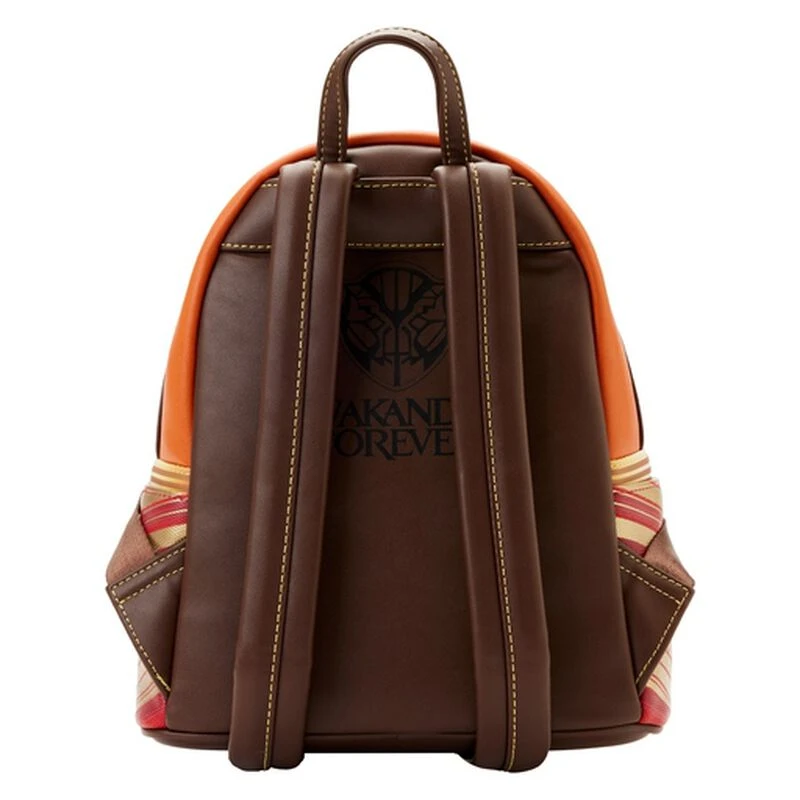 The Loungefly Black Panther Okoye Cosplay Mini Backpack is made of vegan leather (polyurethane). Bag has adjustable shoulder straps and sturdy metal hardware. Additional features include applique, debossed, embossed, top stitching, and printed details. Take note of the coordinating inside lining.