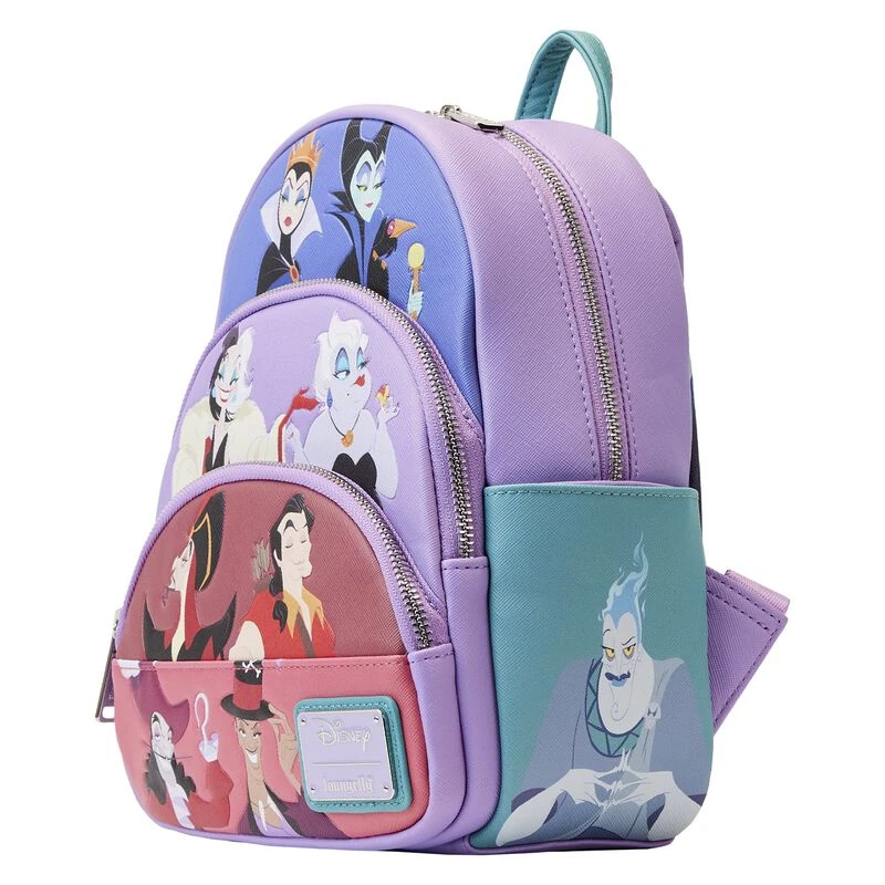 Fiendishly fashionable! Get your claws on our Loungefly Disney Villains Color Block Triple Pocket Mini Backpack. This accessory features a delightfully devilish assortment of Disney Villains, on three different pockets, with pops of block colors and debossed details. You’ll find all your favorites, including Maleficent, the Evil Queen, Cruella de Vil, Ursula the Sea Witch, Jafar, Gaston, Captain Hook, and Dr. Facilier. On the side pockets, Lady Tremaine and Hades make a special appearance, and on the back, Chernabog is a fantastically frightful presence. It’s the perfect accessory for scaring up some fun at your favorite event—or for turning everyday outings into enchanting adventures.