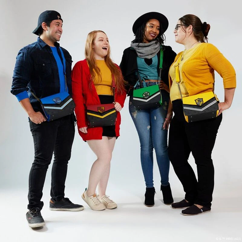 Scale the class ranks at Hogwarts School of Witchcraft and Wizardry in spellbinding style with this Loungefly Harry Potter Slytherin Chain Strap Crossbody Bag. This striking crossbody bag incorporates the green and silver Slytherin House colors in a chevron pattern. The Slytherin crest is on a metal rivet, and the snake logo appears again as a debossed all-over-print on top of a black base. The accordion-style sides reveal accents of strands of silver, and a silver chain strap tops off the look. It’s the perfect accessory for attending a potions class or Quidditch match—or for turning everyday outings into enchanting moments.
