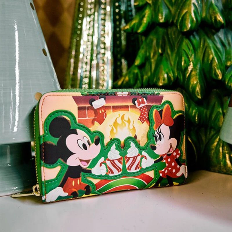 Pour a cup of hot cocoa and join Mickey Mouse and Minnie Mouse by the fire. Celebrate the warmth of the season with this Loungefly Disney Mickey Mouse and Minnie Mouse Fireplace with Cocoa Zip Around Wallet. The fireplace reveals a warm and toasty fire that’s just perfect for Mickey and Minnie Mouse, who raise their whip-cream-filled hot cocoa cups in a toast. Holly decorates the mantel of the fireplace, and stockings await Santa’s arrival. Applique details bring the characters to life. On the back, Pluto has a wish list for Santa. Inside, you’ll find 4 slots for holding cards and 1 clear slot for your ID. It’s the perfect accessory for dashing off to holiday-themed occasions—or for bringing a merry and bright spirit of the season to everyday outings.