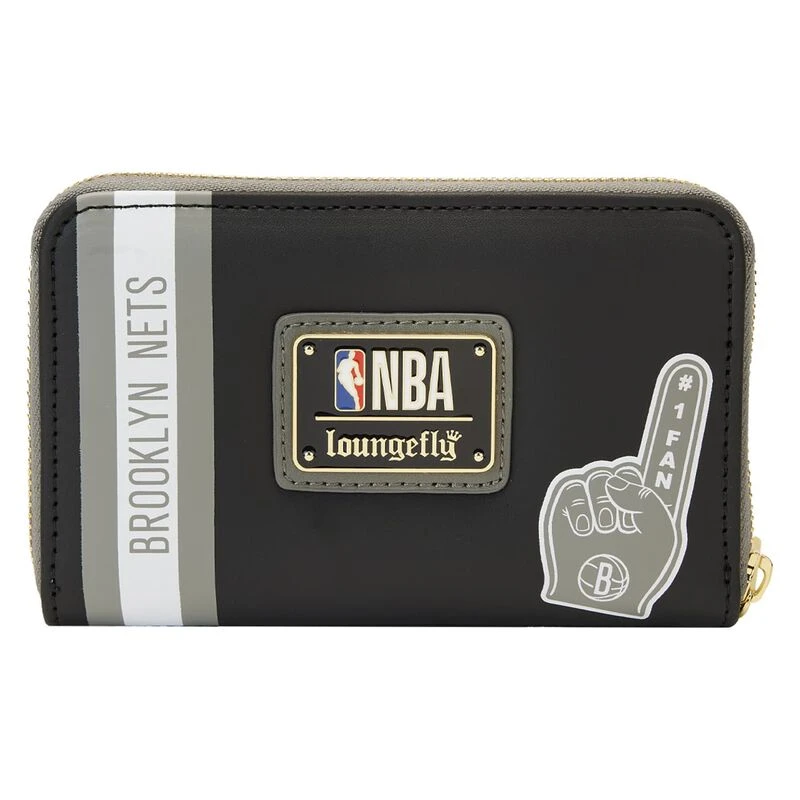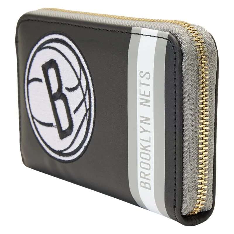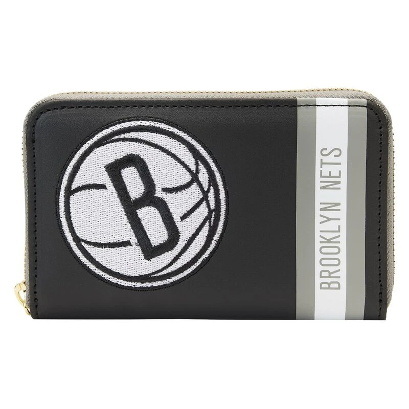 The Loungefly NBA Brooklyn Nets Patch Icons Zip Around Wallet is made of vegan leather (polyurethane). Wallet zips closed with sturdy metal hardware. Additional features include applique and printed details. Take note of the coordinating inside lining.