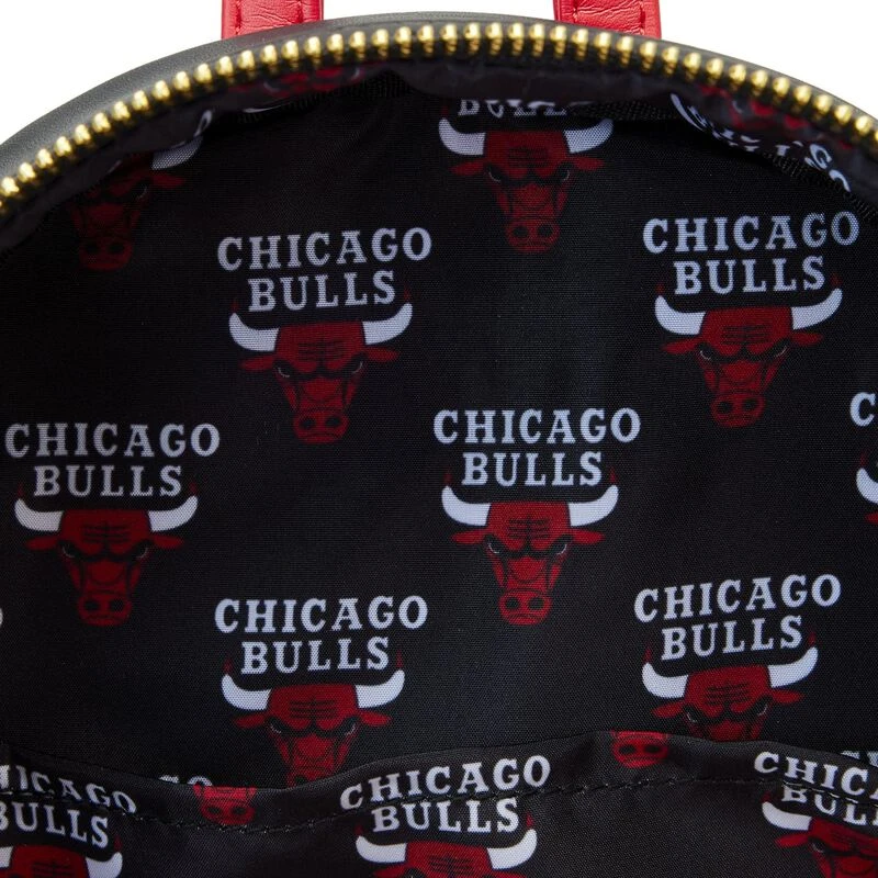 The Loungefly NBA Chicago Bulls Patch Icons Mini Backpack is made of vegan leather (polyurethane). Bag has adjustable shoulder straps and sturdy metal hardware. Additional features include applique, debossed, and printed details. Take note of the coordinating inside lining.