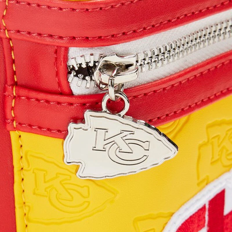 Show your team spirit with a game-winning play for your Loungefly collection! The NFL Kansas City Chiefs Patches Mini Backpack is a touchdown for any Chiefs fan. This red backpack features sporty chenille and embroidered patches along the top and side pockets. The team’s logo is displayed in a debossed pattern across the front zipper pocket along with a rubber patch of the team’s name. An enamel Chiefs zipper charm provides easy access to your gameday essentials, and the NFL logo appears on the back of the bag. This stylish mini backpack has plenty of room to carry your gear as you cheer from the sidelines and makes a sporty addition to any outfit.