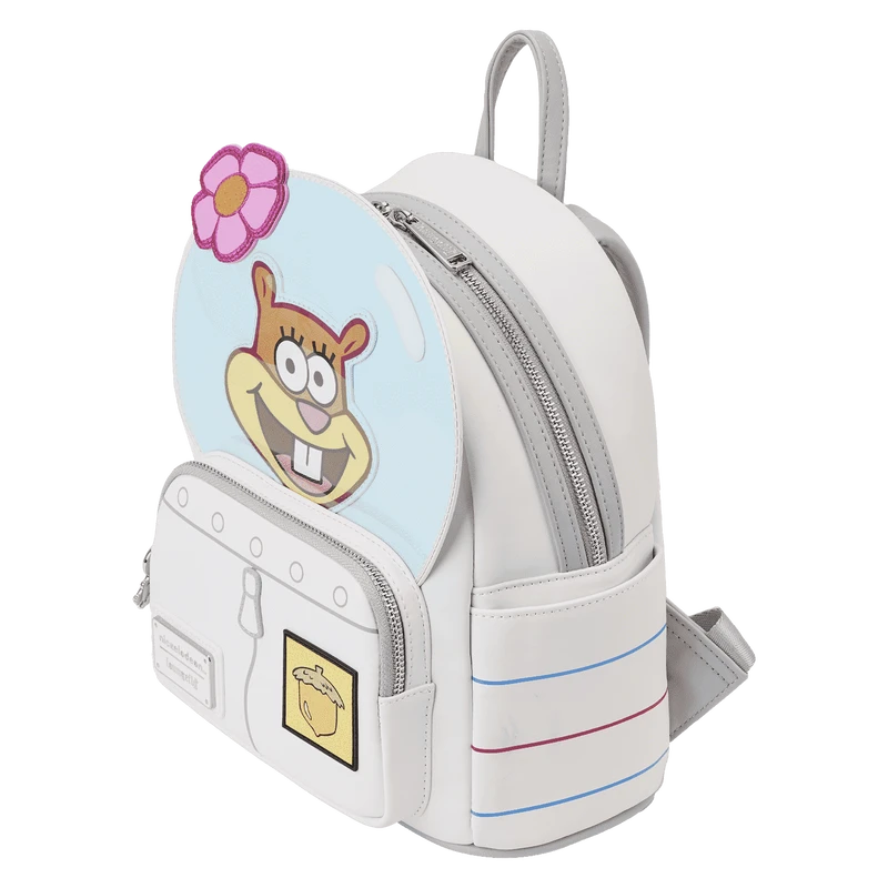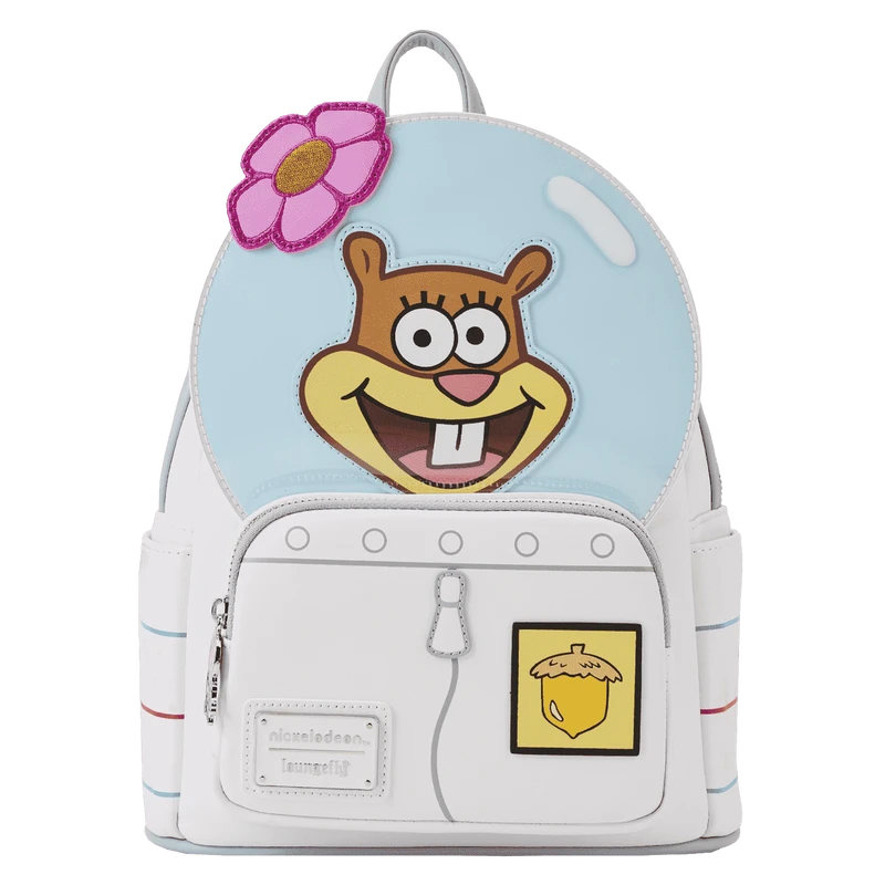 Howdy, partner! Take a gander at the Loungefly SpongeBob SquarePants Sandy Cheeks Cosplay Mini Backpack, which takes the form of one of Bikini Bottom’s most loveable characters. On the front, Sandy appears in her iconic air helmet. Details of her dive suit appear on the front zipper pocket, and an enamel zipper charm of a jellyfish completes the scene. Turn the bag around to see Sandy’s treedome make an appearance. Whether you’re practicing your karate moves or putting your science skills to the test, this mini backpack will keep your belongings safe as you travel the big blue.