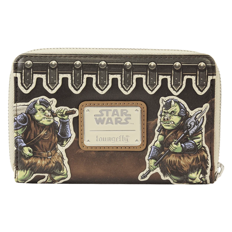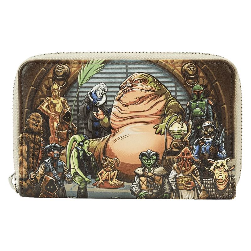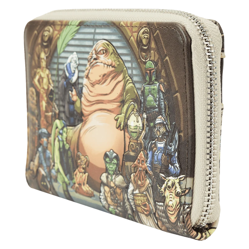 Brave the terrors of Jabba’s Palace and carry your bounty out with the Loungefly Star Wars™: Return Of The Jedi™ Jabba’s Palace Zip Around Wallet. This 40th Anniversary edition design captures an iconic cinematic scene in the third film in the Skywalker saga. On the front, in printed and debossed detail, is Jabba the Hutt along with his entourage. Turn the wallet around to find two of Jabba’s guards at the gate of the Rancor pit. This galactic accessory makes a stellar addition to any outfit and is sure to elevate any Star Wars™ collection.
