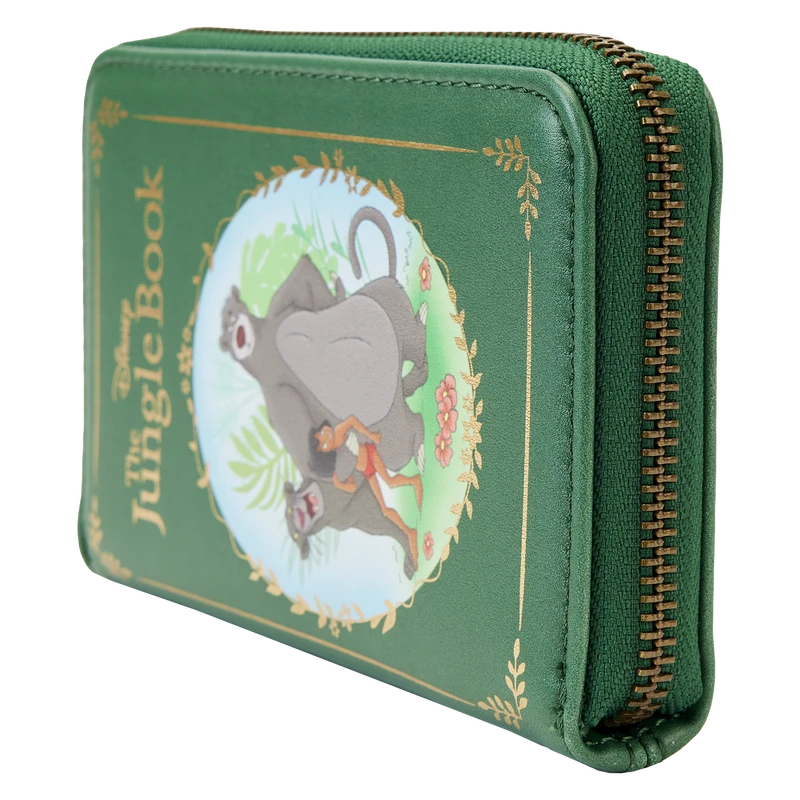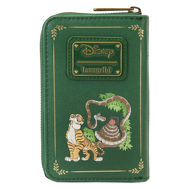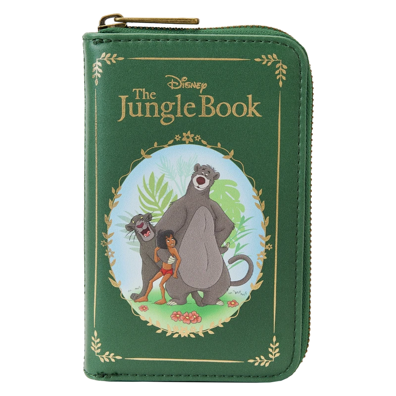 Another adventure for the books! Take along our Loungefly Disney The Jungle Book Zip Around Wallet and let the fun begin. This beautiful interpretation of a Disney classic book features a “front cover” with gold foil lettering. Cherished characters gather in the jungle, including Mowgli, Baloo, and Bagheera. On the back, Shere Khan shows off his claws, and Kaa is coiled around Mowgli. Inside the wallet, you’ll find 5 slots for holding cards and 1 clear slot for displaying your ID. A die-cut shape of a leaf adds a nod to the jungle setting. It’s the perfect accessory for completing all the wondrous outings you’ve bookmarked.